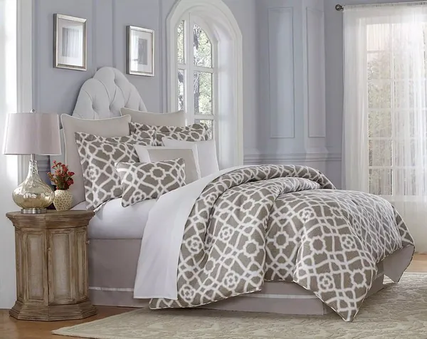 The Harper comforter set is ready to transform your timeless transitional style. This design is all about casual, relaxed comfort. The eye catching quatrefoil pattern is printed on 100 percent cotton duck that looks crisp and cool.