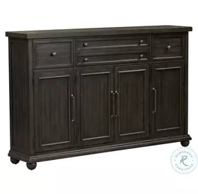 - Hall Buffet features french and english dovetail construction full extension metal side drawer glides (45mm) antique pewter bar pull and knob hardware 4 doors door open to 4 shelves for storage rounded out with three drawers fully stained interior drawers silverware tray in center drawer and bun feet