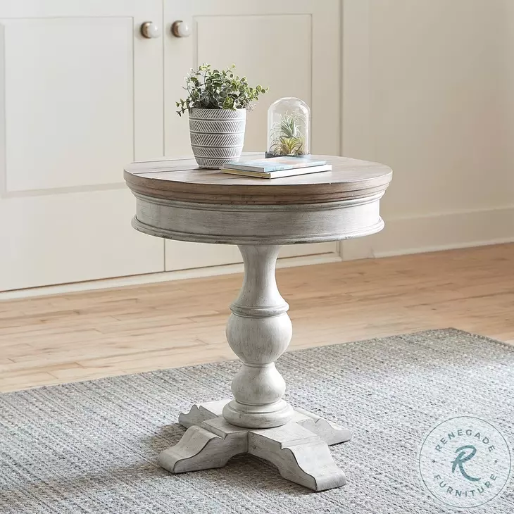 Heartland Antique White And Tobacco Round Pedestal Chairside Table