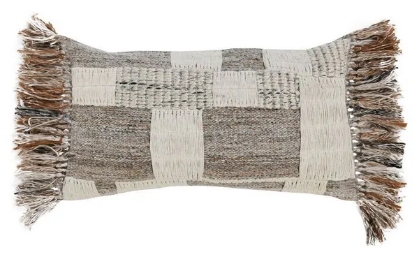 Heritage Craft Farah Ivory and Natural Rectangular Accent Pillow