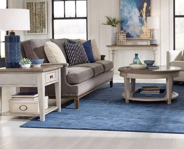 Homestead Antique White and Tobacco Round Ceiling Tile Occasional Table Set