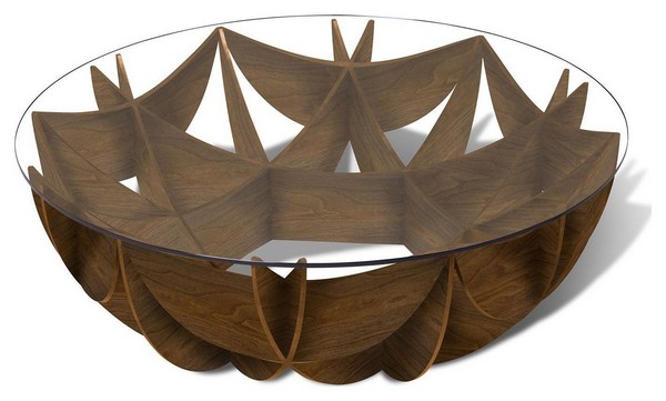 Honeycomb Glass And American Walnut Honeycomb Cocktail Table