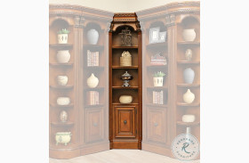 Design a stunning focal point with the Huntington library wall and this Library Wall. Ideal for displaying books, accessories and favorite treasures, it features open display shelves and a closed storage compartment. A rich Antique Vintage Pecan finish highlights its fluted columns and carved detailing.Features