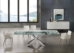 Icon White Marbled And High Polished Stainless Steel Extendable Dining Table
