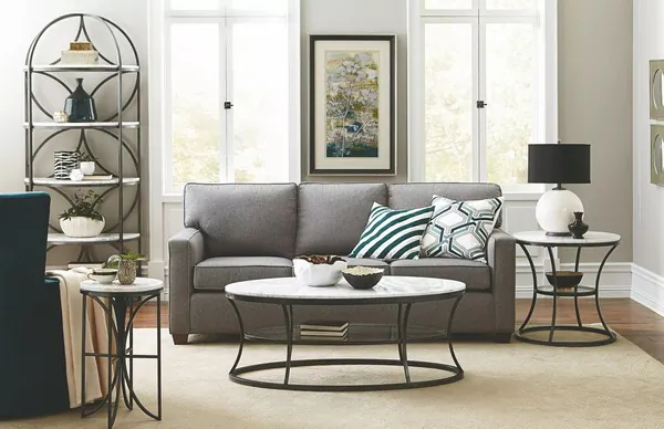 Inspired by casual contemporary styling and a mixing of casual metal and white marble tops. The popular minimal design of metal occasional tables is enhanced and improved by the addition of shape and a tiered appearance.