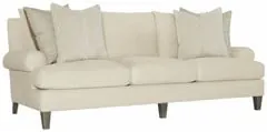 The Isabella collection offers a casual transitional roll arm with deep, plush seating. Shown in a soft, ecru chenille cover accented with textured toss pillows, this classic style is sure to impress any space.