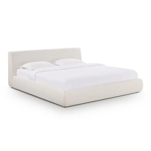 Indulge in the luxurious comfort of the Isla Bed, available in king or queen sizes and designed to elevate your sanctuary. Choose between cream upcycled chenille, a cream jacquard, or textured velvet in black or taupe. Its elegantly rounded rails and footboard, along with mitered corners, create a soft, inviting silhouette. The plush headboard invites you to lean back and unwind, making the Isla Bed the perfect haven for restful nights and dreamy mornings.