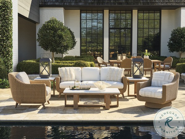 Isle of Palms Mocha and White Agate Stone Top Rectangular Outdoor Occasional Table Set
