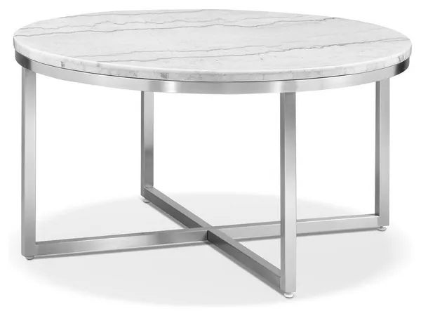 Isolde White and Brushed Nickel Round Marble Top Cocktail Table