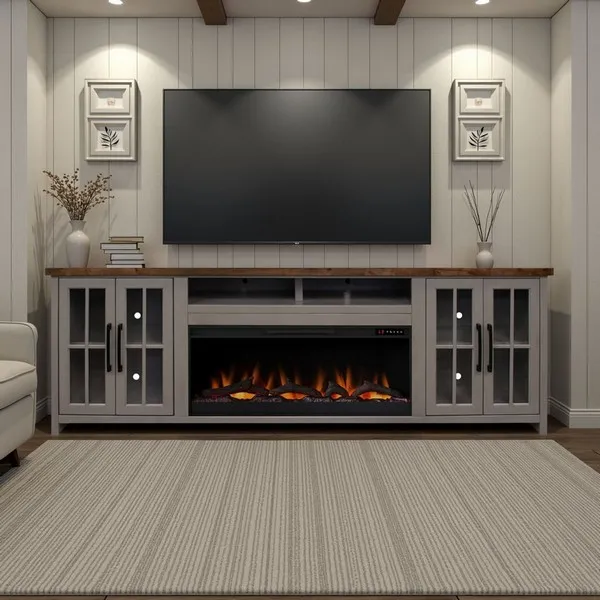Ithaca Blue and Bourbon 96" TV Stand with Fireplace
