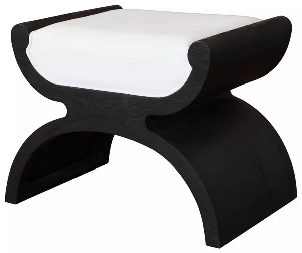 Janna White Linen And Espresso Oak Curved Stool