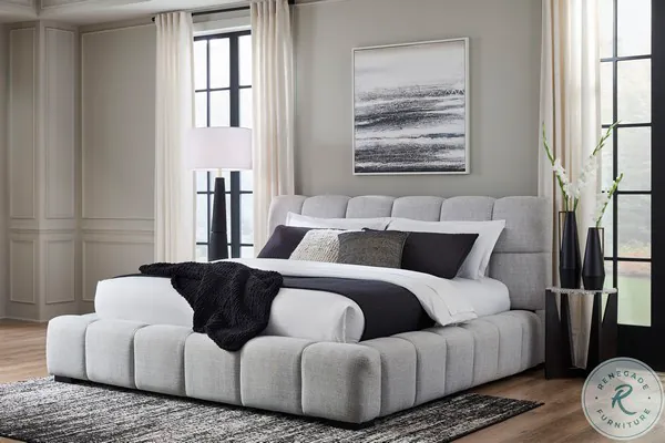 Jesstean Light Gray Performance Fabric King Upholstered Platform Bed