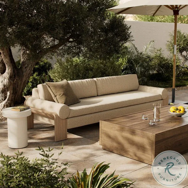 Joette Ellor Beige 104" Upholstered Outdoor Sofa