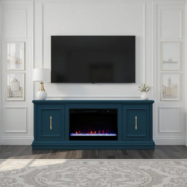Jordan Denim Blue 65" TV Stand with Fireplace