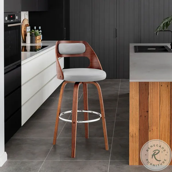 Julius Gray Faux Leather And Walnut Wood 30" Bar Stool