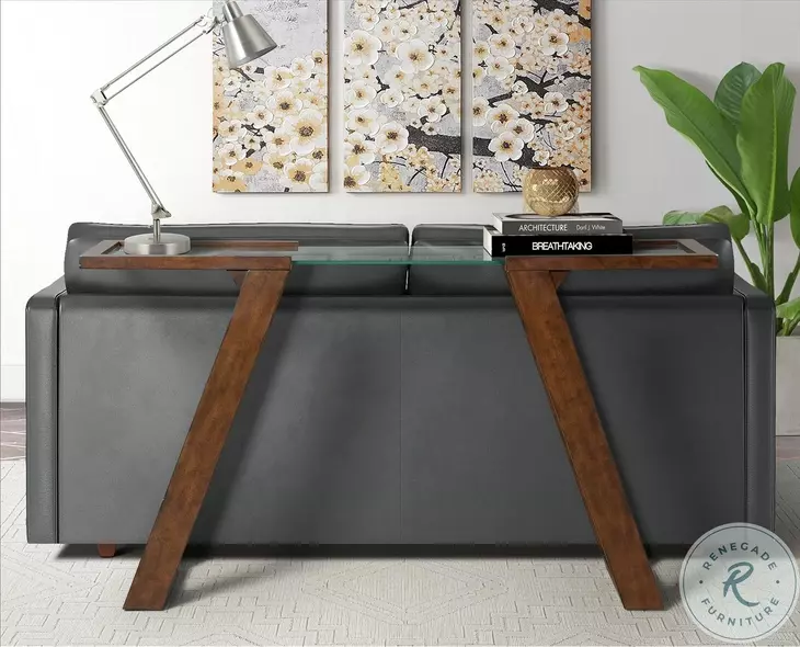 The Picket House Furnishings Kai Sofa Table pays homage to the mid-20th century modern aesthetic. Engineered with a rubberwood base and tempered glass top. The base showcases a very contemporary aerodynamic design. The base is finished in a deep dark espresso that creates a suave and refined feel. The cooperation of the espresso base and tempered glass makes this sofa table a sophisticated additional to any space. Use the Kai Sofa Table as a console table behind your sofa for additional seating or in your dining room as a breakfast nook.Features