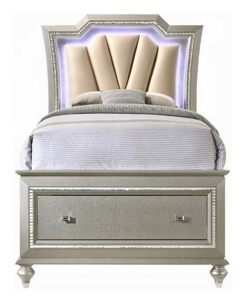 Kaitlyn Synthetic Leather and Champagne Full Upholstered Bed with Storage and LED
