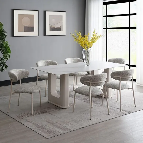 Kalam White and Beige 79" Rectangular Ceramic Top Dining Table
