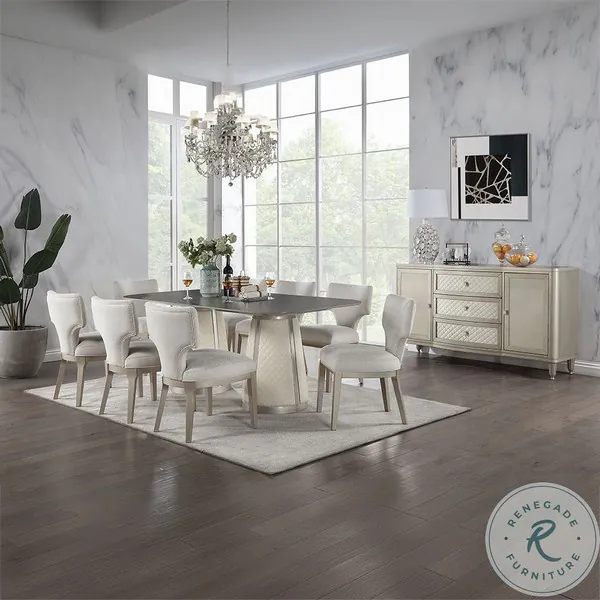 Kasa Gray and Champagne Sintered Stone Top Dining Room Set