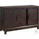 - Server features dovetail drawer construction ball bearing drawer glides dark brown tone handles 2 side cabinets with dual sliding doors each with an adjustable shelf and 1 hidden tray inside the right side door