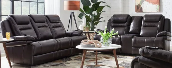 Keaton Chocolate Leather Triple Power Massage Reclining Living Room Set with USB Charging