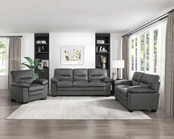 The sleek profile of the Keighly Collection will be the perfect complement to your modern living room. The seating group features a gray fabric cover for the ultimate decorative versatility, while pillow top arms and plush seating create a platform that is perfect for your comfortable seated relaxation.