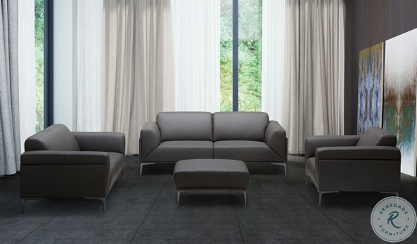 King Sofa Set This unique leather sofa collection includes sofa, loveseat, chair & ottoman. Crafted in grey leather with gunpowder grey legs, the King will add a that modern look to your living space while still maintaining a luxorious feel. This set is sure to impress your family and friends.