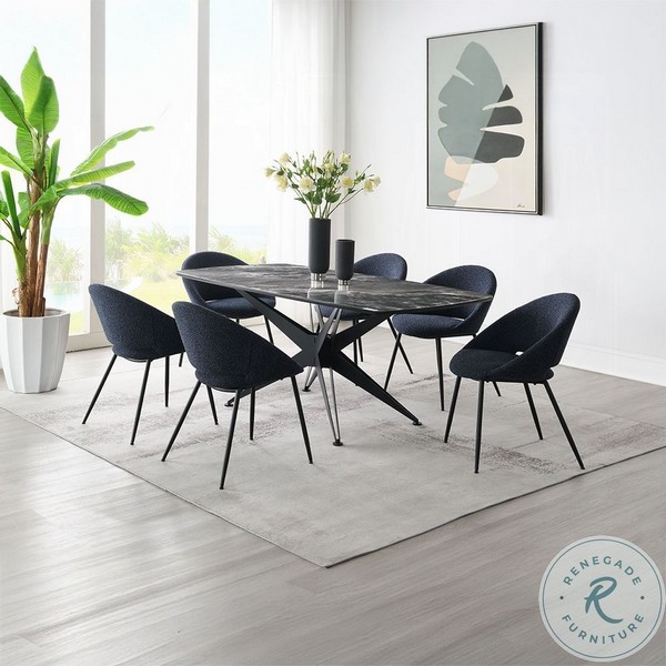 Klaus Crystal Tempered Glass Top and Black Rectangular Dining Room Set