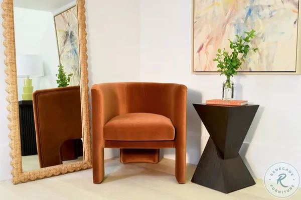 Lansky Rust Velvet Fully Upholstered Barrel Chair