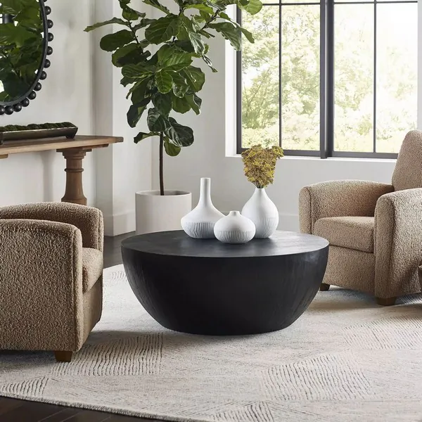 Lark Collection from Uttermost. Showcasing a minimalist style, these tables feature mango wood veneer overlay in a heavily textured finishes.