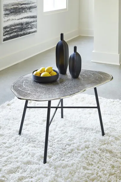 Rich with curated character, Laverford Collection tables puts a contemporary spin on natural beauty. their irregular grooved top is refined with the glamour of a gleaming chrome tone finish. A black base completes these cool pieces.