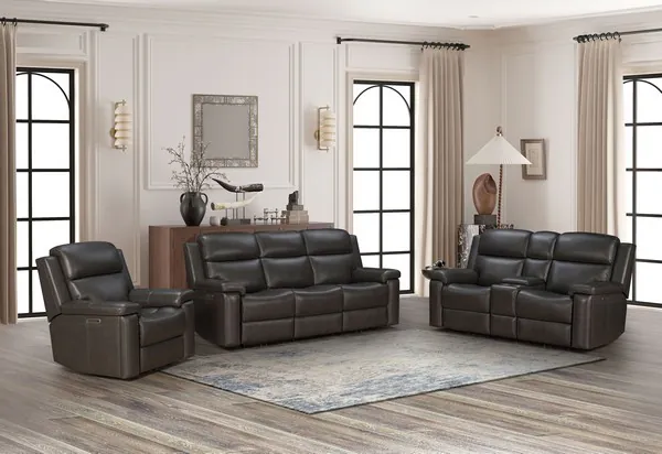 Leon Matteo Smokey Gray Power Reclining Living Room Set With Power Headrest And Power Lumbar