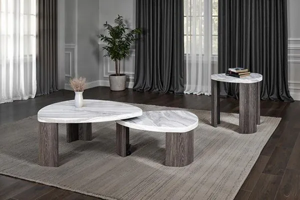 Levis Gray and White Triangular Nesting Cocktail Table with Casters