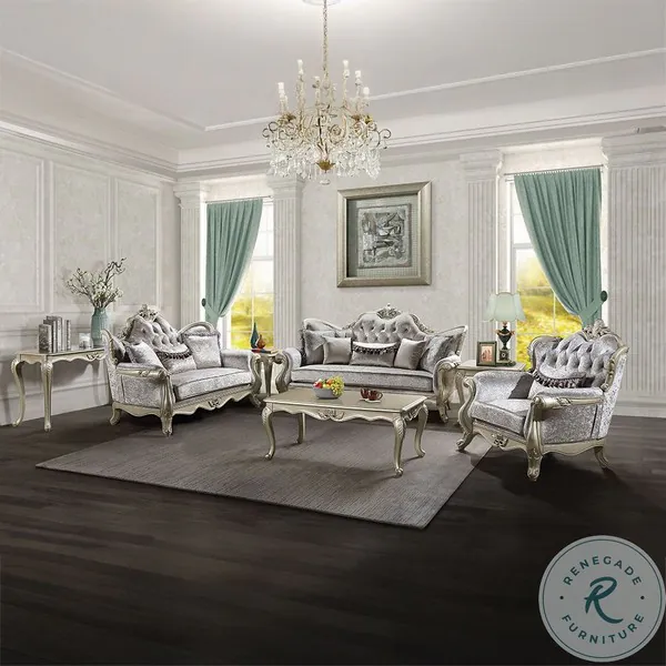 Libertee Beige Fabric and Champagne Living Room Set with 5 Pillows