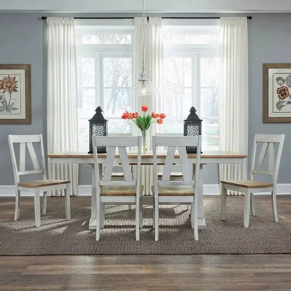 Lindsey Farm Weathered White And Sandstone Extendable Trestle Dining Room Set