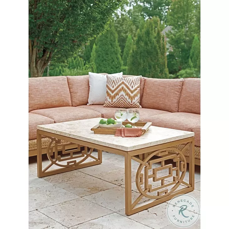 Los Altos Valley View Natural Mactan Stone And Rich Aged Patina Outdoor Rectangular Cocktail Table
