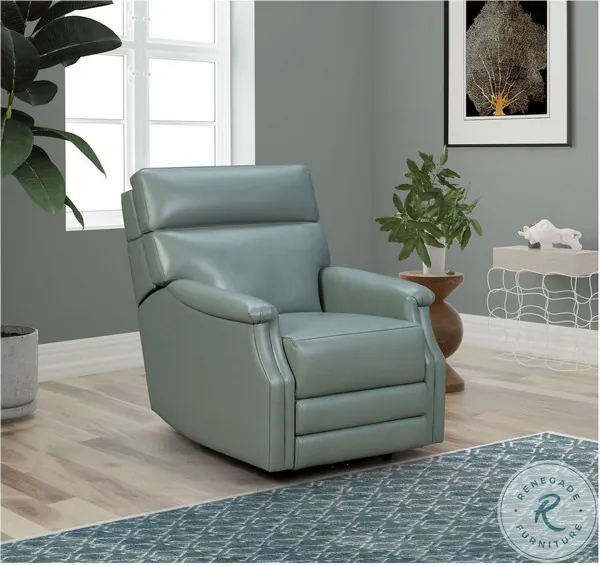 Luca Collection from Barcalounger. Smaller scale and lower profile Heads Up power recliner with high split back and power head rest. Features kneed back arms, tight bull nose seat with pocketed coil springs, and inside the arm controller with USB port.