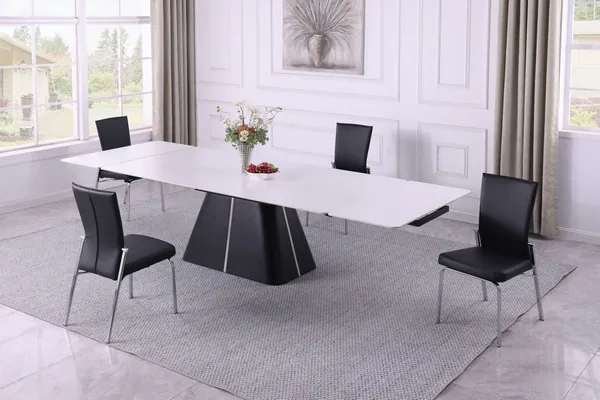 Mabel White And Matte Black Extendable Dining Room Set with Molly Motion Back Side Chair Set of 2