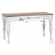 It’s never been easier to be elegant with the Magnolia Manor lift-top writing home office set. Crafted of poplar and rubberwood solids with white oak and birch veneers, this piece features an antique white finish with heavy chipping and distressing with a weathered brown top with whitewash. The top has a unique fancy face veneer pattern with canted corners and offers one the ability to lift it up to work while standing. There is one full extension drawer framed with bead molding that is also a flip-down keyboard tray. Faceted turned legs add character to this desk. Blending of European influences makes Magnolia Manor a truly unique style for any home.Features