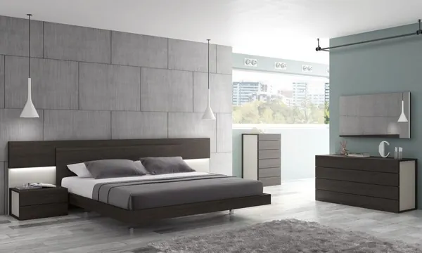 The Maia premium bedroom is a pinnacle of craftsmanship. This elegant bedroom features an extraordinary design that harmonically mixes a wenge wood veneer against a contrast of light grey lacquer. This combination looks gorgeous when illuminated by the lights on the headboard that also feature a dimmer function.