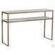 Enhance your living area with the refined beauty of the Malden console table. This exquisite piece showcases a luxurious 1-inch thick white Italian marble surface, elegantly held aloft by a sophisticated antique brass steel frame. A perfect complement to any seating arrangement, this end table from our Malden collection adds a touch of timeless elegance to your space.Features