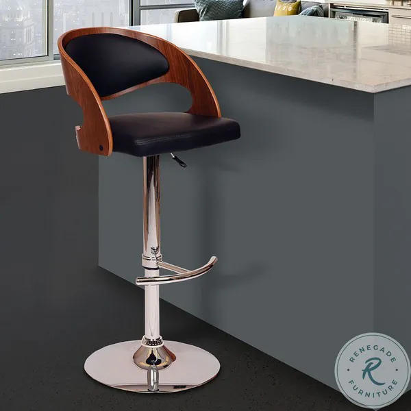 Malibu Black Faux Leather And Walnut Veneer Adjustable Swivel Bar Stool
