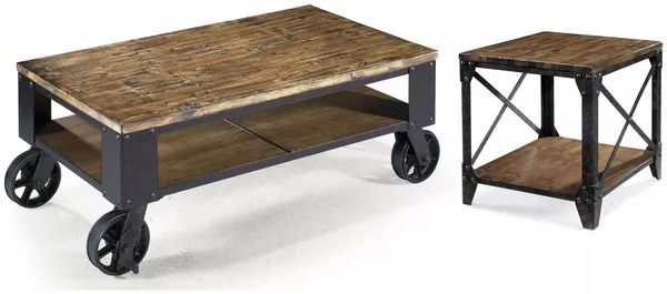 Maplebrook Distressed Natural Pine Rectangular Starter Occasional Table Set