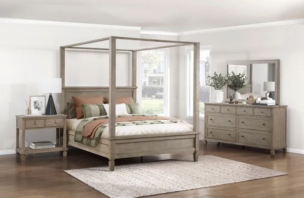Your bedroom reflects your personal style bold with an eye for trend forward design, the Marceline Collection achieves your desired look. The striking grey finish of the collection features hand rub-through distressing for a subtle weathered look. Geometric molding provides a distinct contrast to the traditionally framed case goods. Substantially sized turned legs enhance the look of the oversized case pieces and mansion headboard.