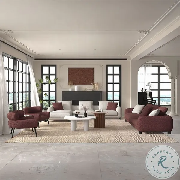 Mardi Maroon Tweed Living Room Set with 3 Pillows