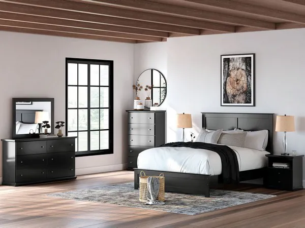 With a relaxed cottage design that features beautiful frame details along with scalloped tops and base mouldings all bathed in a rich black finish, the Maribel Collection creates an inviting atmosphere that is sure to transform the decor of any bedroom.