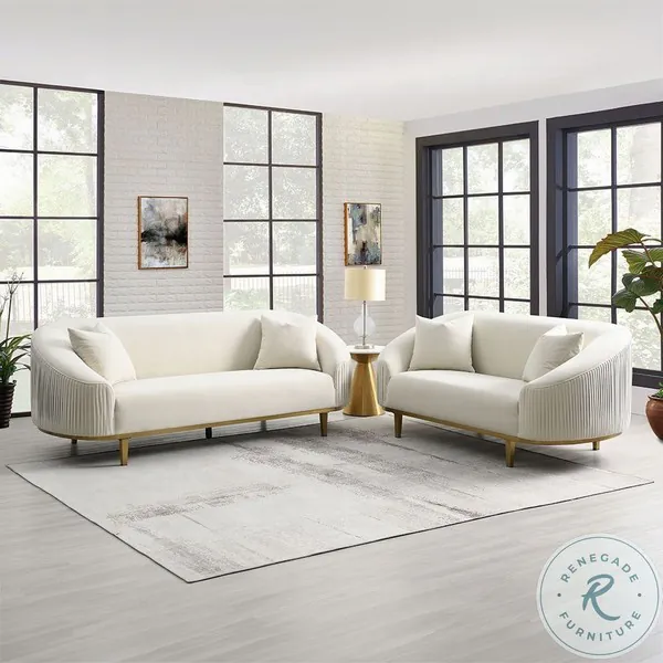 Martina Ivory Velvet Living Room Set with 2 Pillows