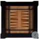Play a variety of games on this stylish table that is veneered with basswood. The top inset has a game board for chess and checkers. Flip the inset over and it converts to a green felt-lined blackjack table. Remove the insert altogether and the well beneath the inset is a backgammon game board. Four glass holders on each corner. Chess and other game pieces shown are not included.Features