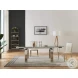 The Moda Extension DIning Table by J&M Furniture redefines pragmatism in the home. The Moda Table features two pull out extensions from either side allowing the table to transform into the entertainment focal point of the home. The polished steel legs compliment the table's support mechanism which can be seen through the clear glass top. The combination of steel and glass create a harmony of design easily compatible with many home decors.Features