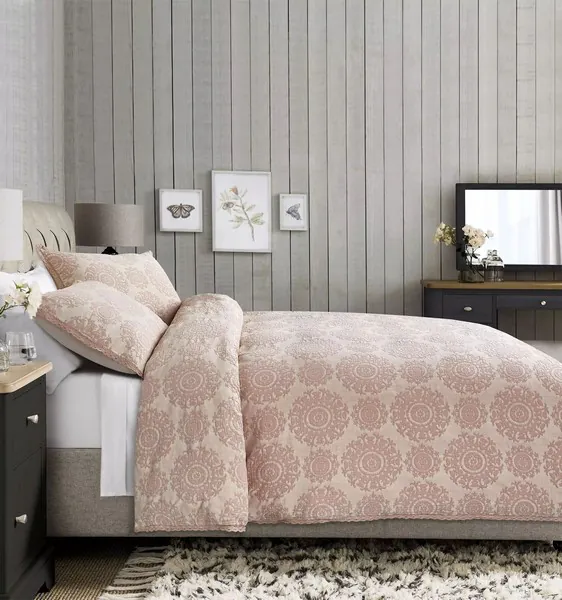 Give your bedroom a casual update with the McKinley duvet set. The vintage stonewashing technique used on the breathable cotton adds to the lived in look of the jacquard medallion design. McKinley is also designed to become more supple with every wash, making this easy care set the perfect addition to your relaxed style. Each piece is finished with a matching cotton crochet trim to complete the look.